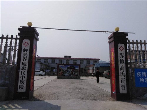 輝縣市界地惠民中醫醫院位于輝縣市南村鎮界地村,其中南院區占地面積2000多平方米,病房樓建筑面積1000多平方米。北院區占地2000多平米,建筑面積7800多平方米的統合大樓正在建設中(2019年3月2日動工)2019年6月1日主體完工。醫院現有職工32人,其中:主治醫師3人,藥師1人,執業醫師10人,執業助理醫師6人,護士10人,設床位20張,科室設置有:外科、醫學檢驗科、醫學影像科、中醫科、內科專業,外科專業,骨傷科專業等科室。醫療設備基本情況:配備有磁共振、TR、血球儀、自動生化分析儀、尿八項分析儀等。