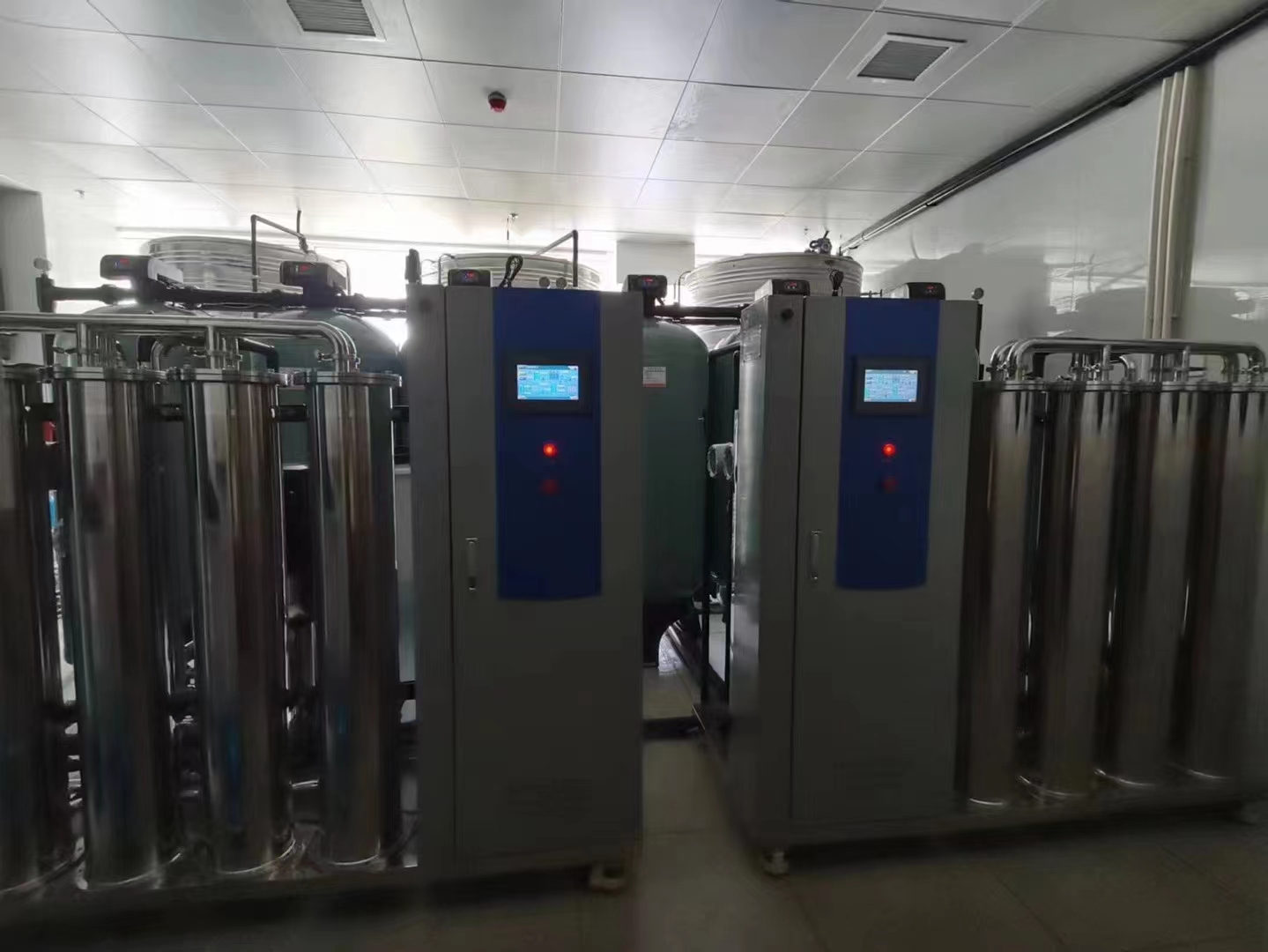 5.儲(chǔ)水系統(tǒng):原水箱1個(gè)容積4T,軟水箱1個(gè)容積4T,純水箱2個(gè)容積4T,材質(zhì)均為304不銹鋼水箱,水箱配備自動(dòng)檢測(cè)水位進(jìn)行補(bǔ)水,通知高壓泵的啟停,并配備可視化液位管,方便觀察設(shè)備的工作狀態(tài);