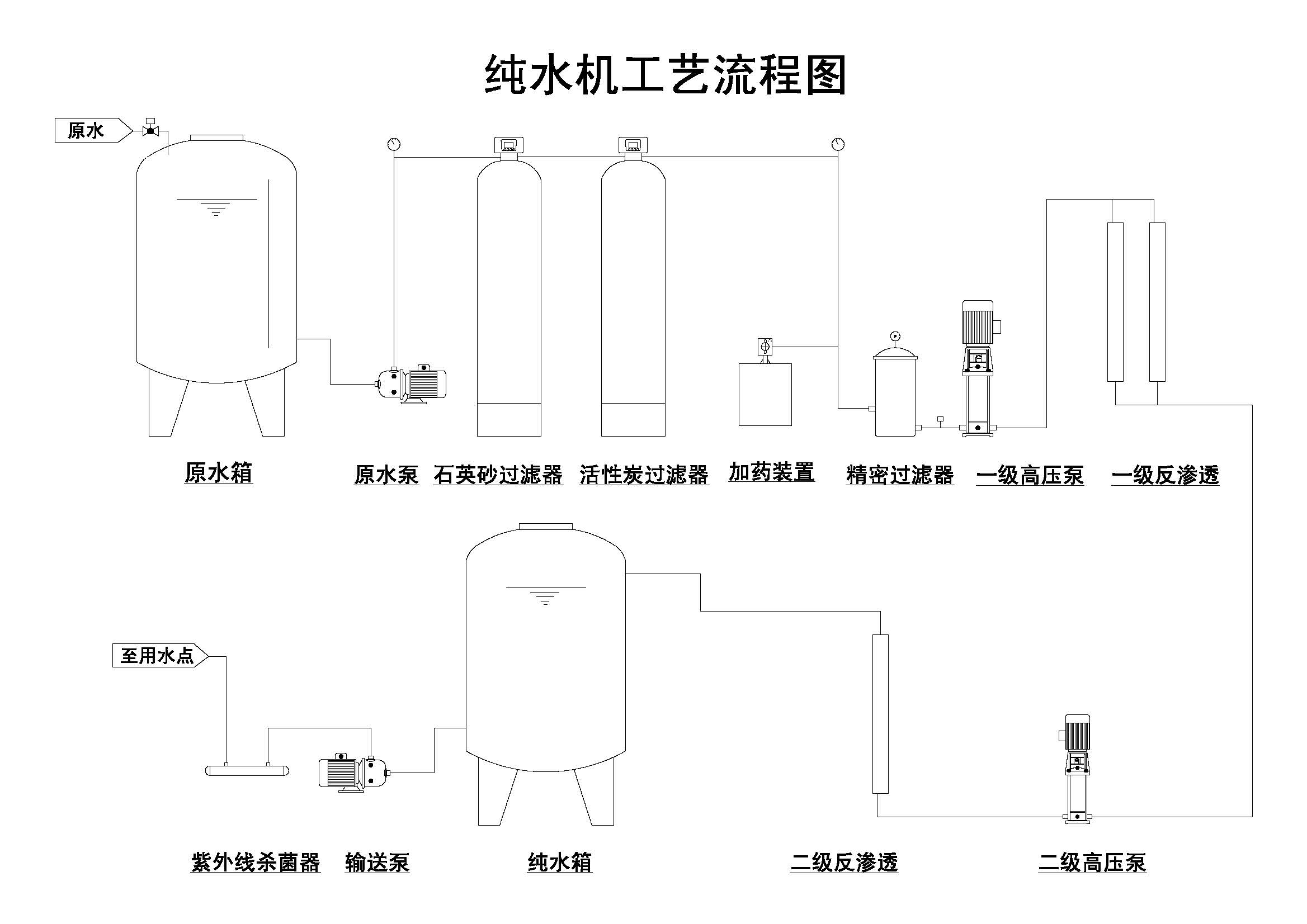 處理方式:預處理+單級反滲透+恒壓輸送殺菌系統