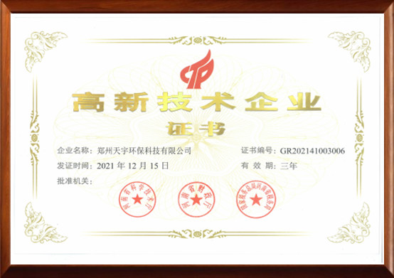 喜訊!根據(jù)國(guó)家《高新技術(shù)企業(yè)認(rèn)定管理辦法》和《高新技術(shù)企業(yè)認(rèn)定管理工作指引》的相關(guān)規(guī)定,鄭州天宇環(huán)保科技有限公司被認(rèn)定為高新技術(shù)企業(yè)。