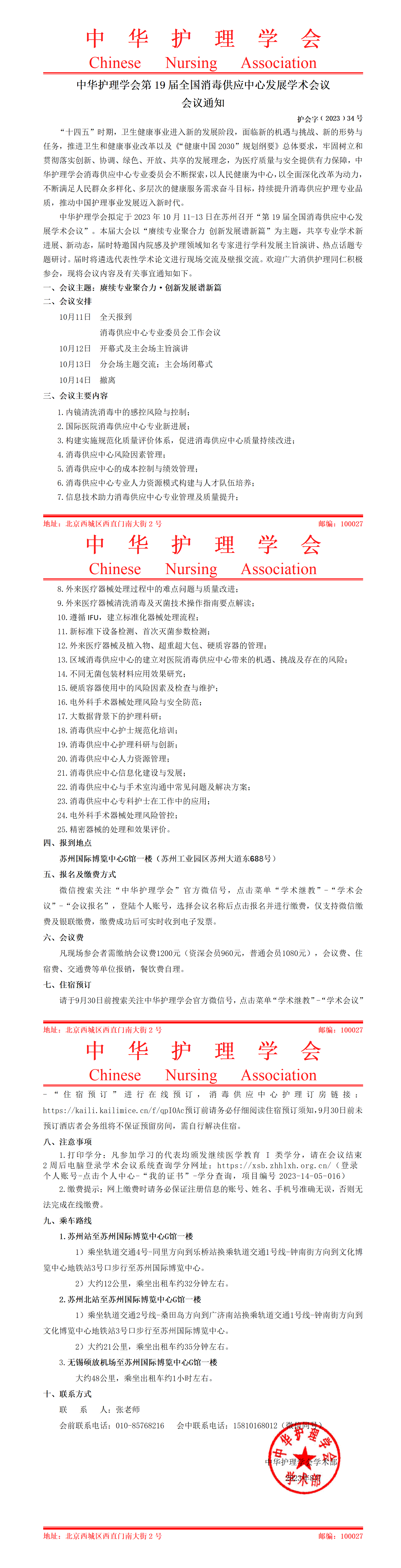 第19屆全國消毒供應中心發展學術會議將于 2023 年 10月 11 日-10 月 13日在蘇州國際博覽中心G館召開。
